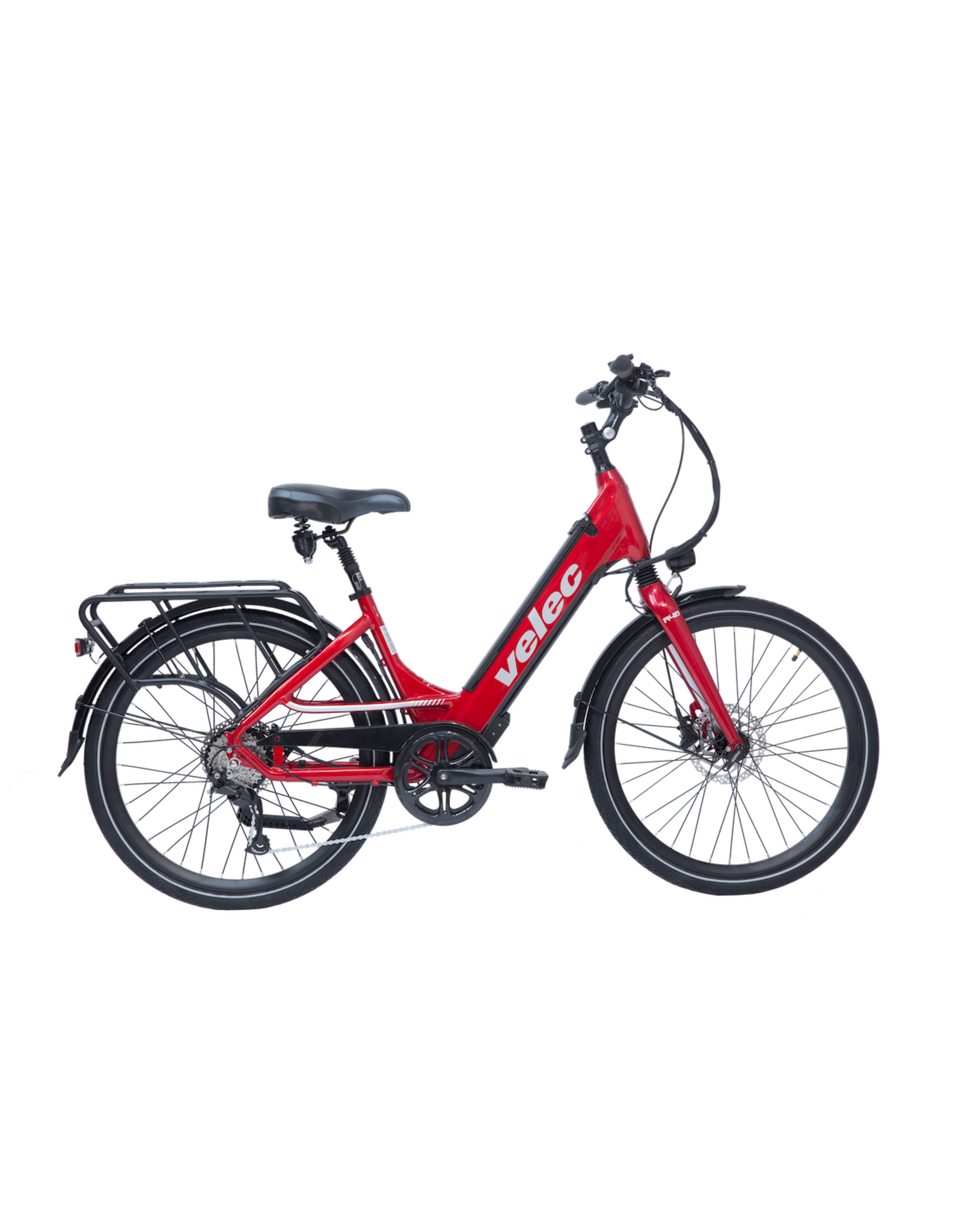 VELEC A2 RED 8 SPEED FRONT SUSPENSION ELECTRIC ASSISTED BIKE WITH FULL DISC BRAKES